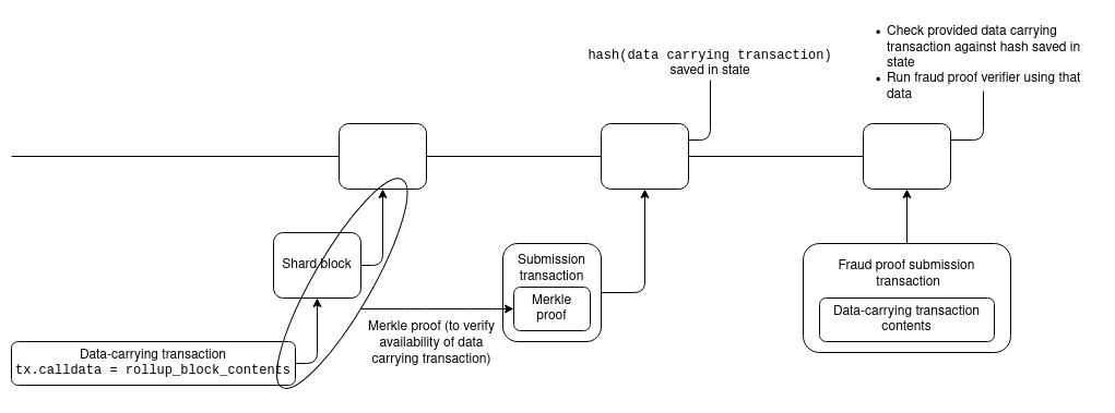 One major difference between the sharding world and the status quo is that in the sharding world, it will not be possible for rollup data to actually be part of the transaction that is submitting a rollup block into the smart contract. Instead, the data publication step and the rollup block submission step will have to be separate: first, the data publication step puts the data on chain (into the shards), and then the submission step submits its header, along with a proof pointing to the underlying data.