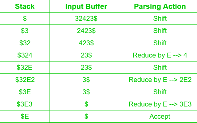 - Parsing Table: Similar to a predictive parser, a parsing table helps the parser decide what action to take next.