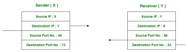 For sending data from an application on the sender side to an application at the destination side, the sender must know the IP address of the destination and port number of the application (at the destination side) to which he wants to transfer the data. Block diagram is shown below :