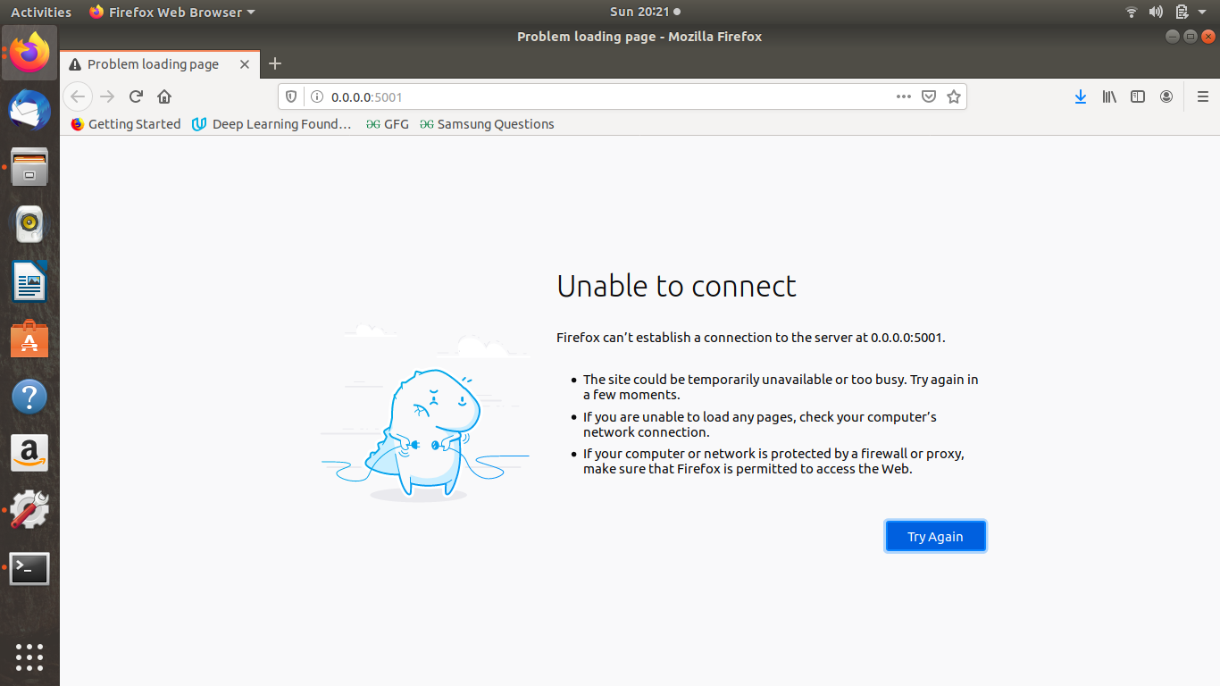 Refresh the browser again and it should give an error since the server has been closed.