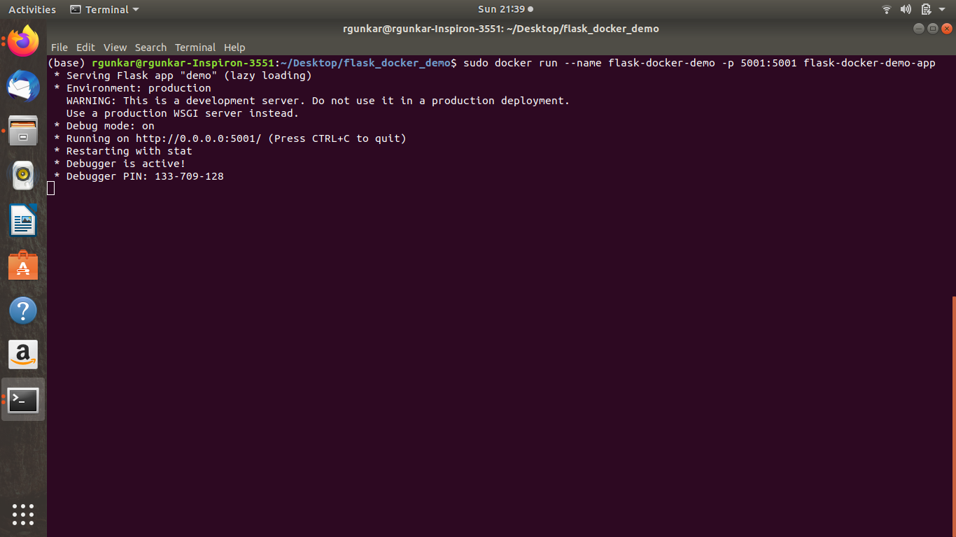 sudo docker run --name flask-docker-demo-app -p 5001:5001 flask-docker-demo-app