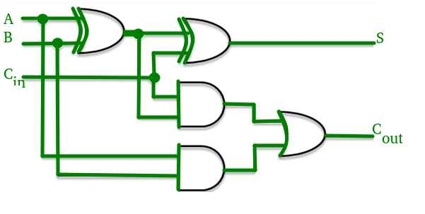2. When one of the two bits is 1 and the carry-in is 1.