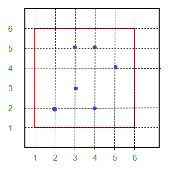 + findTriangles(pointsInRectangle(1, 1, 6, 6)));