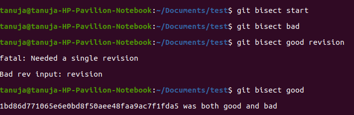 Now, git will automatically checkout a revision halfway between the known “good” and “bad” versions.