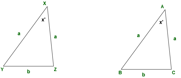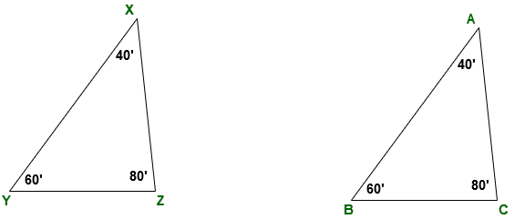 - (iii) AAA (angle - angle - angle) rule:If all angles of a triangle are equal to all angles of another triangle then these two triangles are congruent to each other by AAA rule, e.g.,