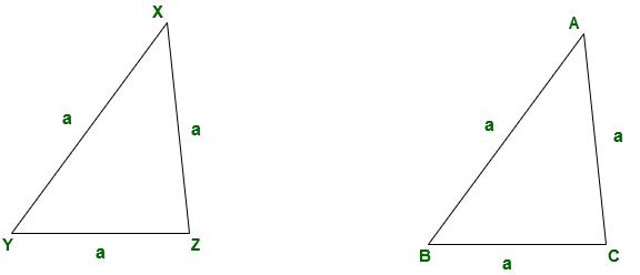 If all sides of a triangle is equal to all sides of another triangle. Then these two triangles are congruent to each other by SSS rule, e.g.,