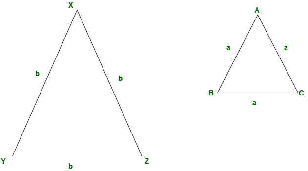 Two triangles are similar if their shape is same but it is not necessary that their size is also same. To prove two triangles are similar scale factor of similarity is used, this factor check the equivalence of ratio of corresponding sides and corresponding angles, e.g.,