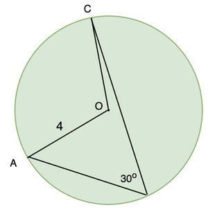 Now we have the angle inscribed at the centre and the radius of the circle is 4cm(given).