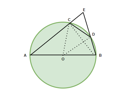 Since segments OB, OC, and OA are all radii of the same circle, they are all congruent. Therefore, both triangles COB and COA are isosceles triangles. Angles B and BCO are congruent since they are opposite congruent sides of the isosceles triangle COB. Similarly, angles A and ACO are congruent because they are opposite congruent sides of the triangle COA.