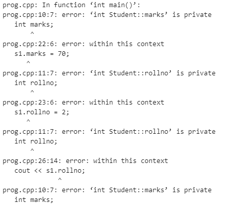 Explanation: The above method is wrong and does not make the object an actual object because the values stored are garbage due to the private context of the class Student. The object just physically appears. To make the object behave as an actual object which can store values, constructors come into play.