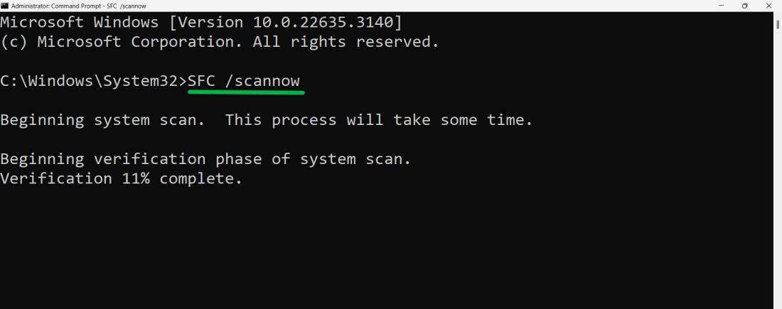 Running SFC can repair corrupted system files, potentially resolving msosync.exe errors: