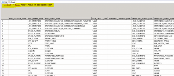 To see details in this view, run this query: select * from "SYS"."OBJECT_DEPENDENCIES";