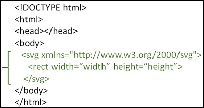 You can try to run the following code to draw a rectangle in HTML5. The <rect> element will be used