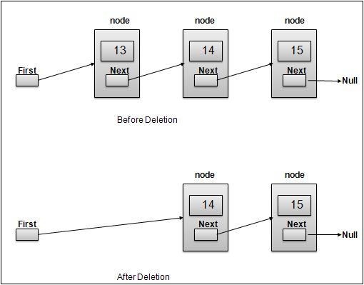 - Removing an element from head: In this case, we can simply assign head = head.next. This way we'll lose the reference of the first element. And out head will start pointing to the second element.