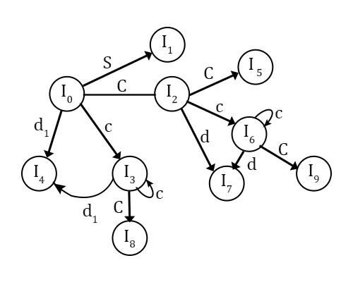 First of all, 10 states, i.e.,I0 to I9 will act as nodes for DFA.