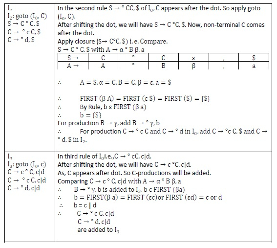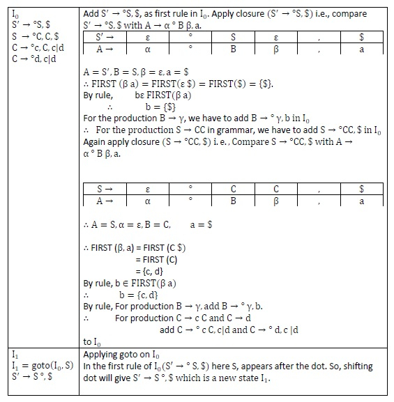 Step2 − Find closure & goto to construct LR (1) items