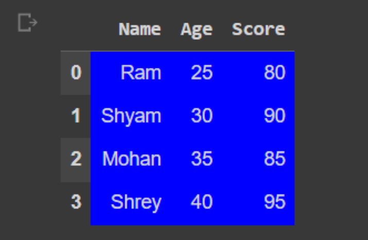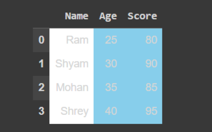 In the following example, we will highlight all three columns using apply() method. To do so, we just need to set the 'color' variable to 'blue' without specifying any condition as we did in the previous example.