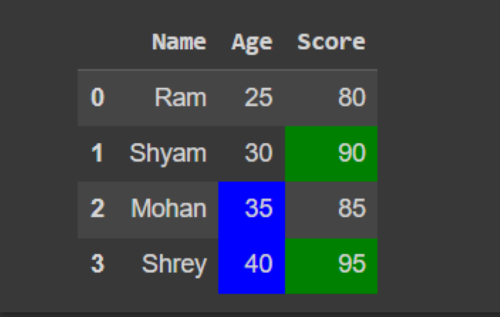 If the column name is 'Score', we iterate over each value in the column and check if it is greater than or equal to 90. If it is, we return the background-color to green.