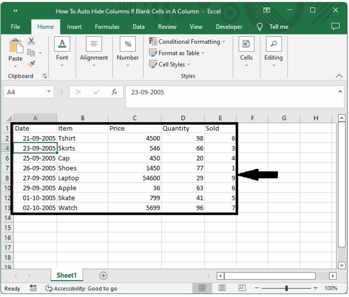 How to Auto-Hide Columns if There are Blank Cells in a Column in Excel?