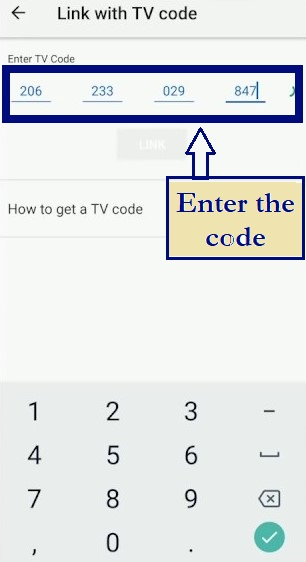 Step 5 ? Enter the blue TV code shown on your TV on the mobile and tap LINK.