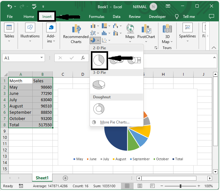 Here, we will first create a PIE chart and then format the chart to complete the task. So let us see a simple process to know how you can create a half pie chart in Excel.