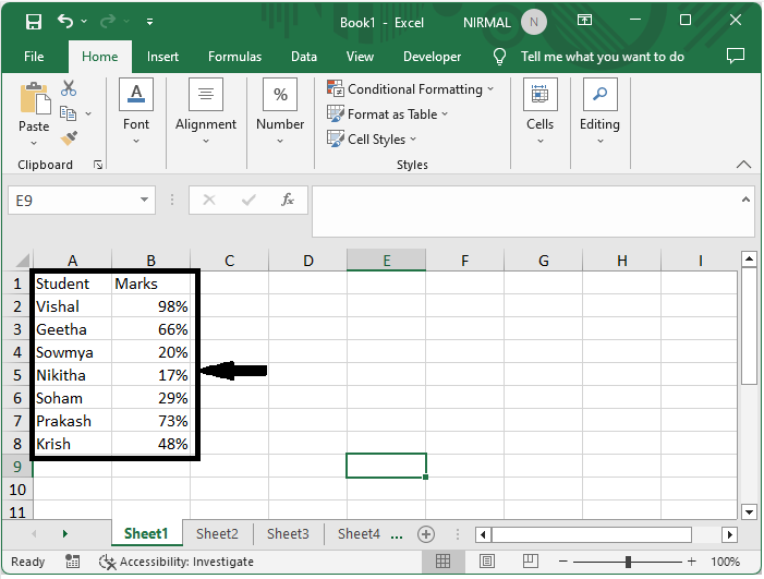 Consider an Excel sheet where you have appropriate data to create a chart similar to the below image.