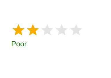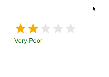 //define labels const labels = { 1: Poor, 2: Good, ? } //get ratings to display along with the rating stars function getRatings(val) { return `${val} Star${val !== 1 ? "s" : ""}, ${labels[val]}`; } // define the states const [val, setVal] = useState(2); const [hover, setHover] = useState(-1); //use in App() component <div> <Rating precision={0.5} value={val} getLabelText={getRatings} onChange={(event, newValue) => { setVal(newValue); }} onChangeActive={(event, newHover) => { setHover(newHover); }} emptyIcon={<StarIcon style={{ opacity: 0.40 }} fontSize="inherit" />} /> {val !== null && ( <Typography>{ratingLabels[hover !== -1 ? hover : val]}</Typography> )} </div>