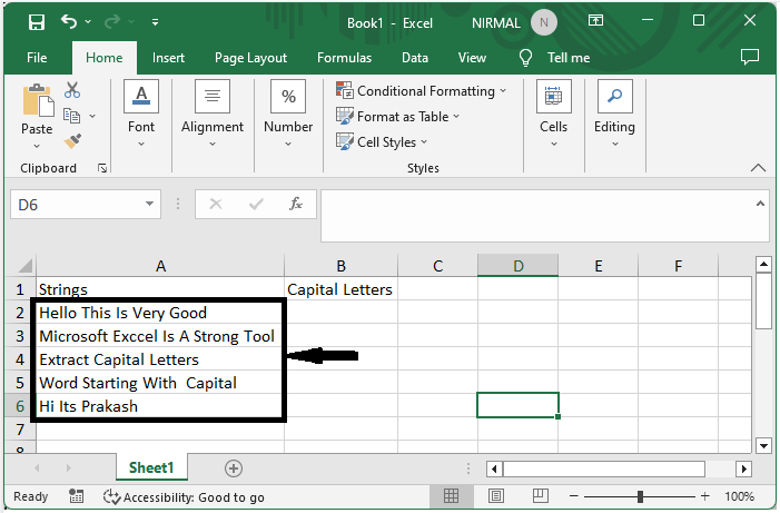 How to Extract Capital Letters or Words Starting with Capital Letter from Text Strings in Excel