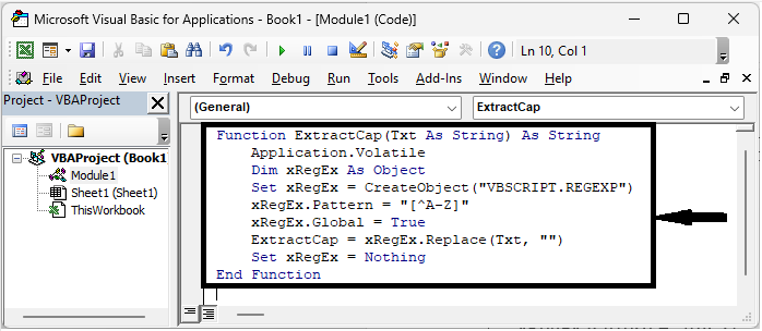 Here we will first create a user-defined formula using VBA and then use the formula to complete the task. So let us see a simple process to know how you can extract capital letters or words starting with a capital letter from text strings in Excel.
