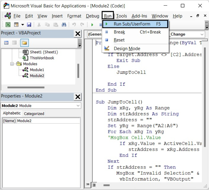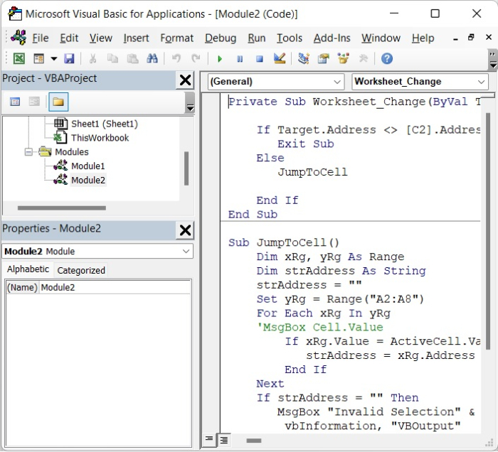 On the other hand, there are instances when you might wish to choose a cell in Excel in such a way that the selection is determined by the options presented in yet another drop-down list. You might have ever thought about how to move to the next cell over in Excel based on the selection you make in a drop-down list. In this tutorial you are going to learn about the selection of a cell based on another selection from the drop-down list using VBA.