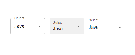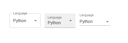 import React from "react"; import { Box, FormControl, InputLabel } from "@mui/material"; import MenuItem from "@mui/material/MenuItem"; import Select from "@mui/material/Select"; import { useState } from "react"; const App = () => { const [state, setState] = useState(""); const handleState = (e) => { setState(e.target.value); }; return ( <div> <Box sx={{ p: 10 }}> <FormControl variant="outlined" sx={{ m: 1, minWidth: 120 }}> <InputLabel id="select" label="Lang">Language</InputLabel> <Select value={state} onChange={handleState} label="Lang"> <MenuItem value={10}>Java</MenuItem> <MenuItem value={20}>Python</MenuItem> </Select> </FormControl> <FormControl variant="filled" sx={{ m: 1, minWidth: 120 }}> <InputLabel id="select">Language</InputLabel> <Select id="select" value={state} onChange={handleState} label="Select" > <MenuItem value={10}>Java</MenuItem> <MenuItem value={20}>Python</MenuItem> </Select> </FormControl> <FormControl variant="standard" sx={{ m: 1, minWidth: 120 }}> <InputLabel id="select">Language</InputLabel> <Select id="select" value={state} onChange={handleState} label="Select" > <MenuItem value={10}>Java</MenuItem> <MenuItem value={20}>Python</MenuItem> </Select> </FormControl> </Box> </div> ); }; export default App;