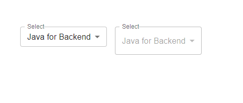 import React from "react"; import { Box, FormControl, InputLabel } from "@mui/material"; import MenuItem from "@mui/material/MenuItem"; import Select from "@mui/material/Select"; import { useState } from "react"; const App = () => { const [state, setState] = useState(""); const handleState = (e) => { setState(e.target.value); }; return ( <div> <Box sx={{ p: 10 }}> <FormControl variant="outlined" sx={{ m: 1, minWidth: 120 }} size="small"> <InputLabel id="select" label="Lang">Select</InputLabel> <Select readOnly value={state} onChange={handleState} label="Lang"> <MenuItem value={10}>Java for Backend</MenuItem> <MenuItem value={20}>C++ for CP</MenuItem> <MenuItem value={30}>JavaScript for web</MenuItem> <MenuItem value={40}>Python for Data</MenuItem> </Select> </FormControl> <FormControl variant="outlined" sx={{ m: 1, minWidth: 120 }} size="medium"> <InputLabel id="select" label="Lang">Select</InputLabel> <Select disabled value={state} onChange={handleState} label="Lang"> <MenuItem value={10}>Java for Backend</MenuItem> <MenuItem value={20}>C++ for CP</MenuItem> <MenuItem value={30}>JavaScript for web</MenuItem> <MenuItem value={40}>Python for Data</MenuItem> </Select> </FormControl> </Box> </div> ); }; export default App;