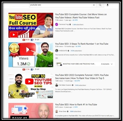 For example: If I search with a keyword "YouTube SEO" then a list of the videos based on the keyword YouTube SEO will be displayed in the search results.