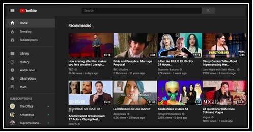 YouTube shows users videos from their subscribed channels, videos seen by similar users, new videos, and more as they visit their home page. The following criteria were used to choose these videos: