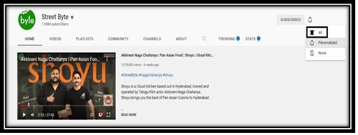 The notification option is available with users, where they can get no alerts from your channel, some notifications, or all notifications.