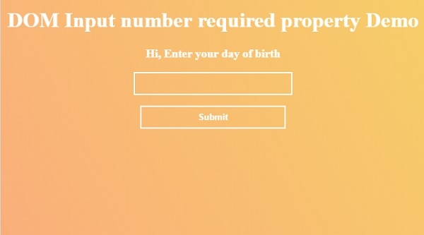 The HTML DOM input number required property returns and modify whether the input number field must be filled out before submitting the form.