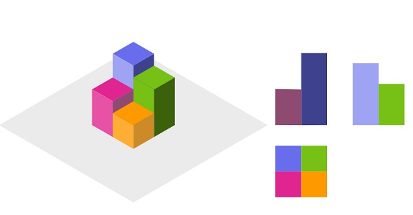Suppose there is a N x N grid, we place some 1 x 1 x 1 cubes that are axis-aligned with the x, y, and z. Here each value v = grid[i][j] is showing a tower of v cubes placed on top of grid cell (i, j). We view the projection of these cubes onto the xy, yz, and zx planes. Here, we are viewing the projection when looking at the cubes from the top, the front, and the side view. We have to find the total area of all three projections.