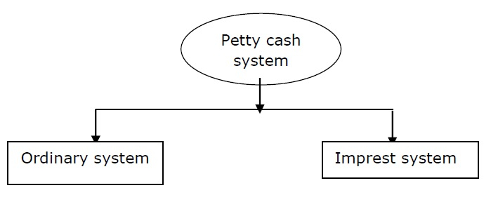 - Open/ordinary system − Chief cashier gives a lump sum amount to petty cashier for a fixed time and after that fixed period petty cashier submits records for amount spent.