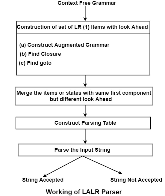 LALR Parser is Look Ahead LR Parser. It is intermediate in power between SLR and CLR parser. It is the compaction of CLR Parser, and hence tables obtained in this will be smaller than CLR Parsing Table.